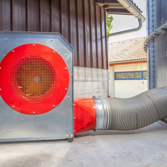 Depending on the necessary ventilation amount of the material and on the tower height, suitable blower power with 4kW, 5.5kW, 7.5kW or 11kW strong electrical motors is selected.