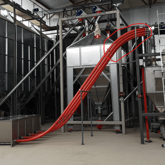 Gruber flexible spiral transporter system is easy to adjust to practically any location. It can be set up with various bends, at differing heights, etc., that way adjusting to the circumstances of premises. The system is fully closed off to guarantee that fodder is kept fresh.
